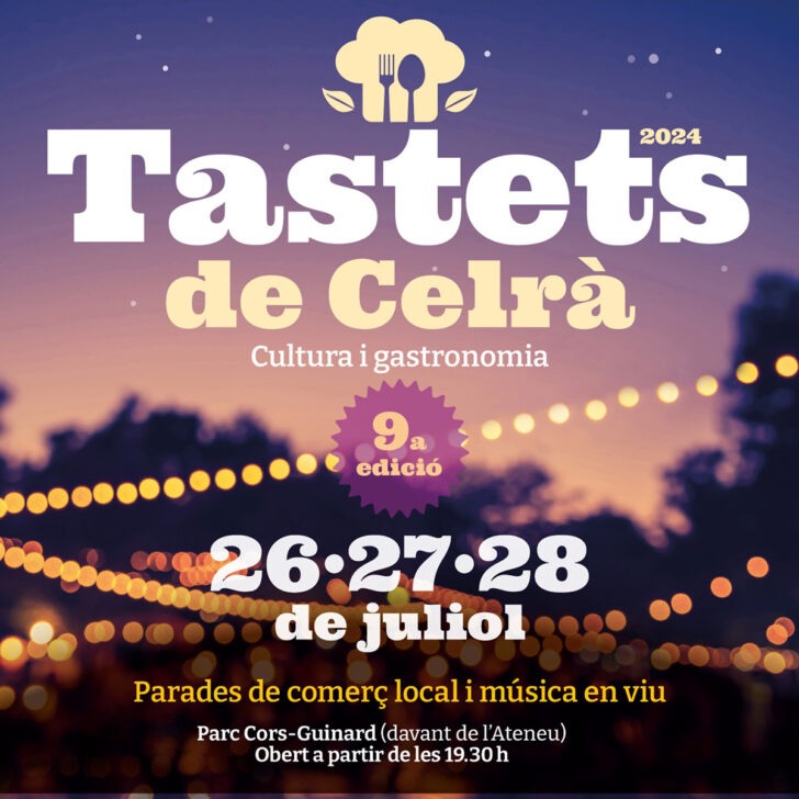 Ajuntament de Celrà, amb la col·laboració de l’Associació de Comerciants, organitza del 26 al 28 de juliol la novena edició dels Tastets de Celrà, un esdeveniment que combina, durant tres dies, cultura i gastronomia sota el lema Gastronomia, cultura i comerç de proximitat.